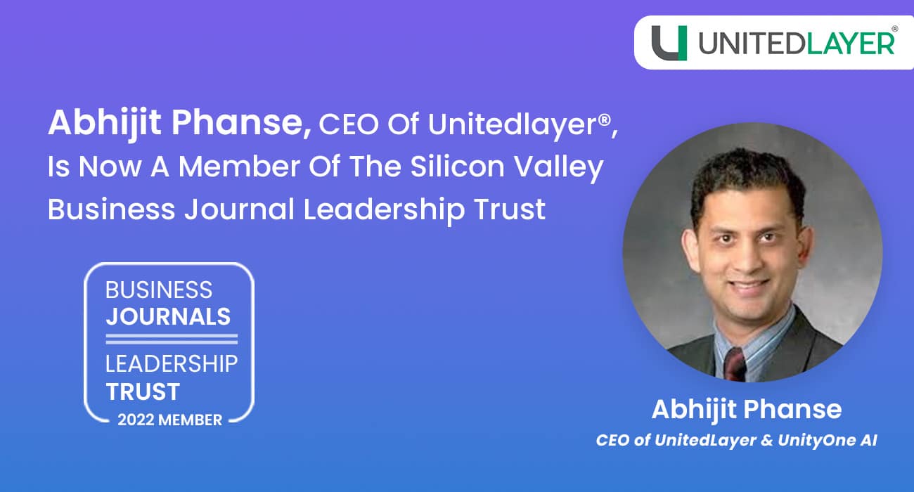 San Francisco, CA – October 2022 – Abhijit Phanse, CEO of UnitedLayer® is now a member of the Silicon Valley Business Journal Leadership Trust, an exclusive community for influential business leaders, executives, and entrepreneurs in Silicon Valley.