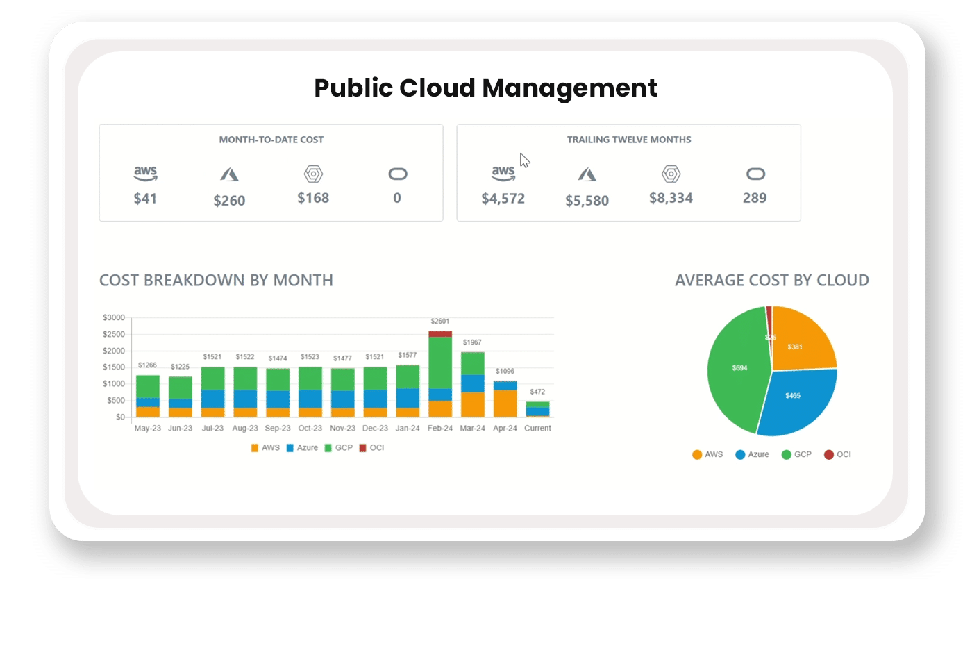 A unified dashboard to manage AWS, Azure, and GCP efficiently.